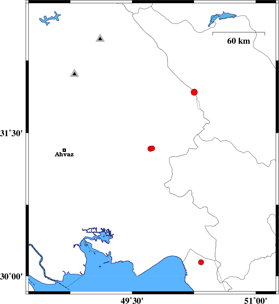 | 2016/01/09 | 05:45:51.3 | 09:15:51.3 | 31.34 | 49.744 | 14 | ML:2.8 | Khoozestan Province, 15 km -East of Ramhormoz | ||