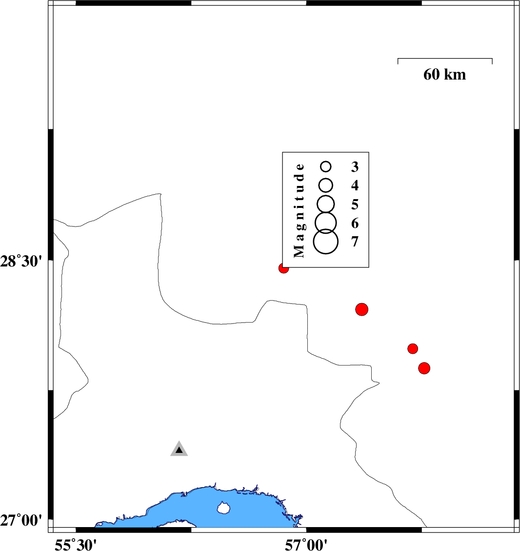 2015/12/27 | 03:48:56.0 | 07:18:56.0 | 27.99 | 57.692 | 14 | ML:3 | Kerman Province, 4 km of Kahnuj | ||