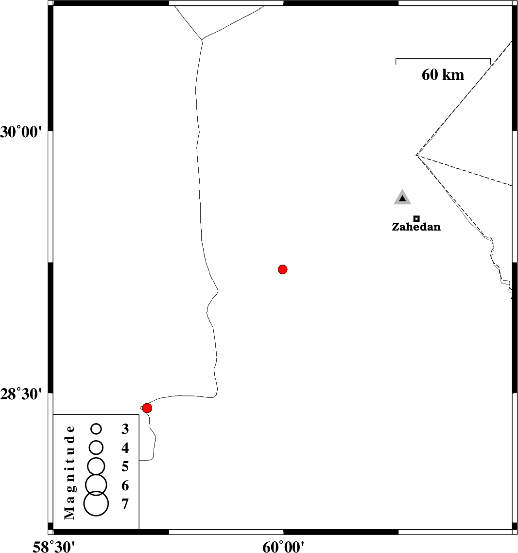 | 2016/01/07 | 11:48:24.8 | 15:18:24.8 | 29.21 | 59.993 | 14 | ML:2.7 | Sistan va Baloochestan Province, 91 km South-West of Zahedan | ||