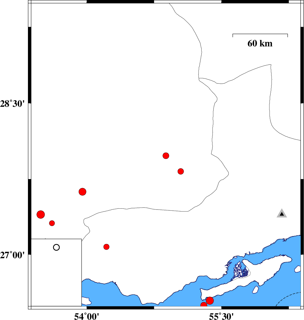 Persian Gulf, 45 km -East of Bandar-e lengeh | |