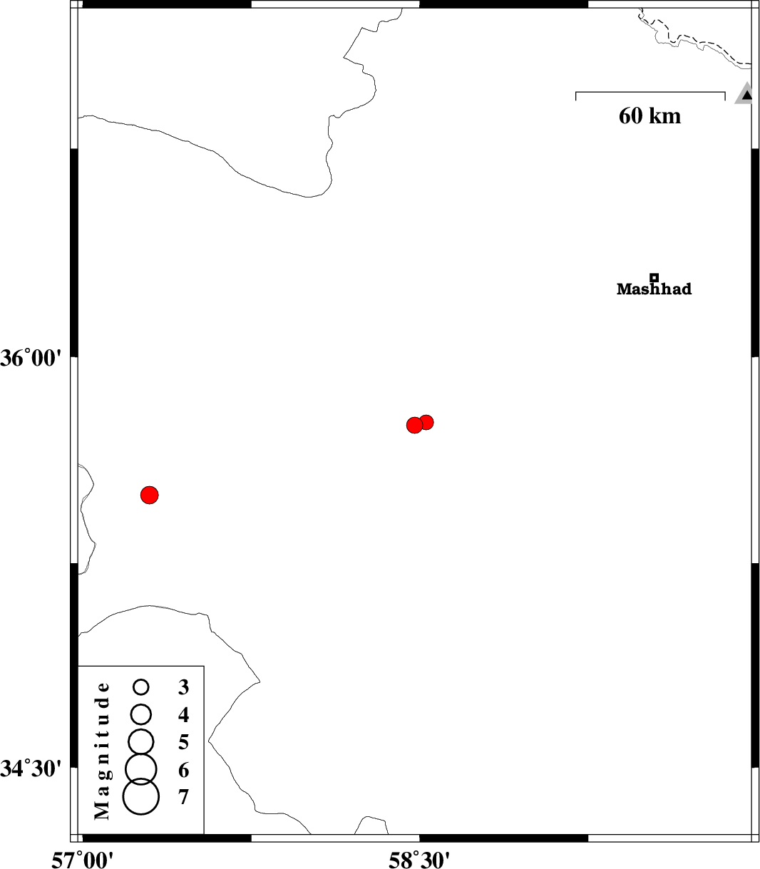 2016/01/16 | 08:54:16.1 | 12:24:16.1 | 35.498 | 57.296 | 17 | ML:3.5 | Khorasan(center) Province, 65 km North-West of Bardeskan |