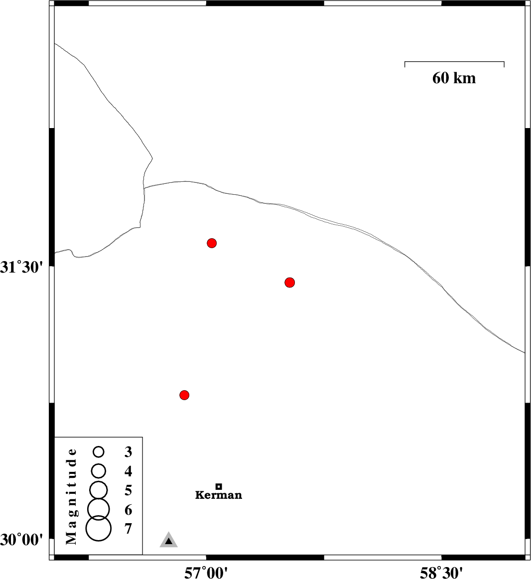 2016/01/15 | 11:48:34.7 | 15:18:34.7 | 30.793 | 56.859 | 14 | ML:2.7 | Kerman Province, 28 km -East of Zarand |