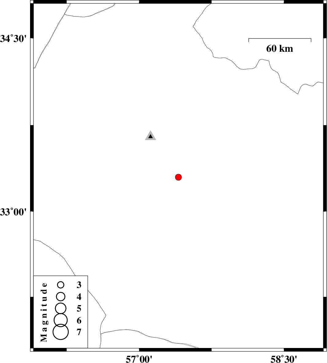 | 2016/02/10 | 22:24:02.2 | 01:54:02.2 | 33.297 | 57.407 | 15 | ML:2.9 | Yazd Province, 56 km South-East of Tabas | ||