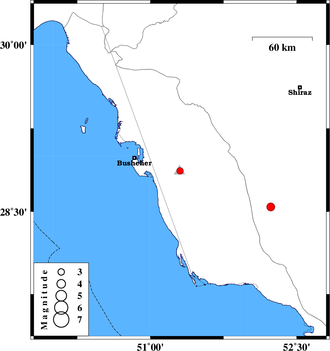 | 2016/02/10 | 18:53:05.4 | 22:23:05.4 | 28.868 | 51.304 | 14 | ML:3.1 | Bushehr Province, 4 km of Ahram | ||
