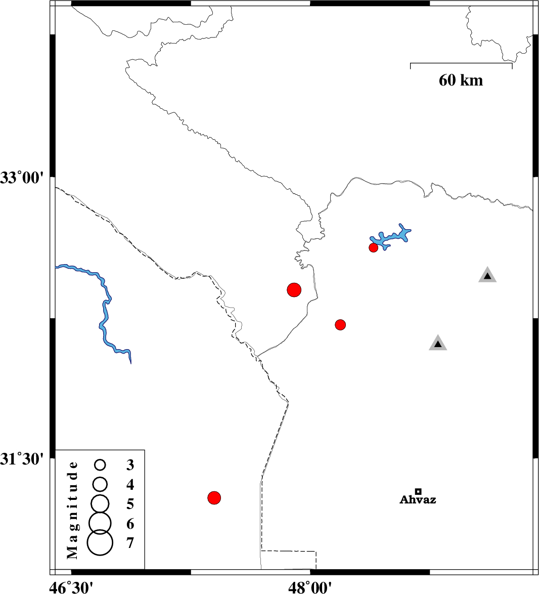 | 2016/02/11 | 03:14:43.6 | 06:44:43.6 | 31.287 | 47.396 | 15 | ML:3.6 | Iraq, 81 km South-West of Susangerd |