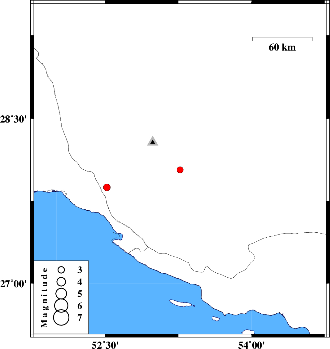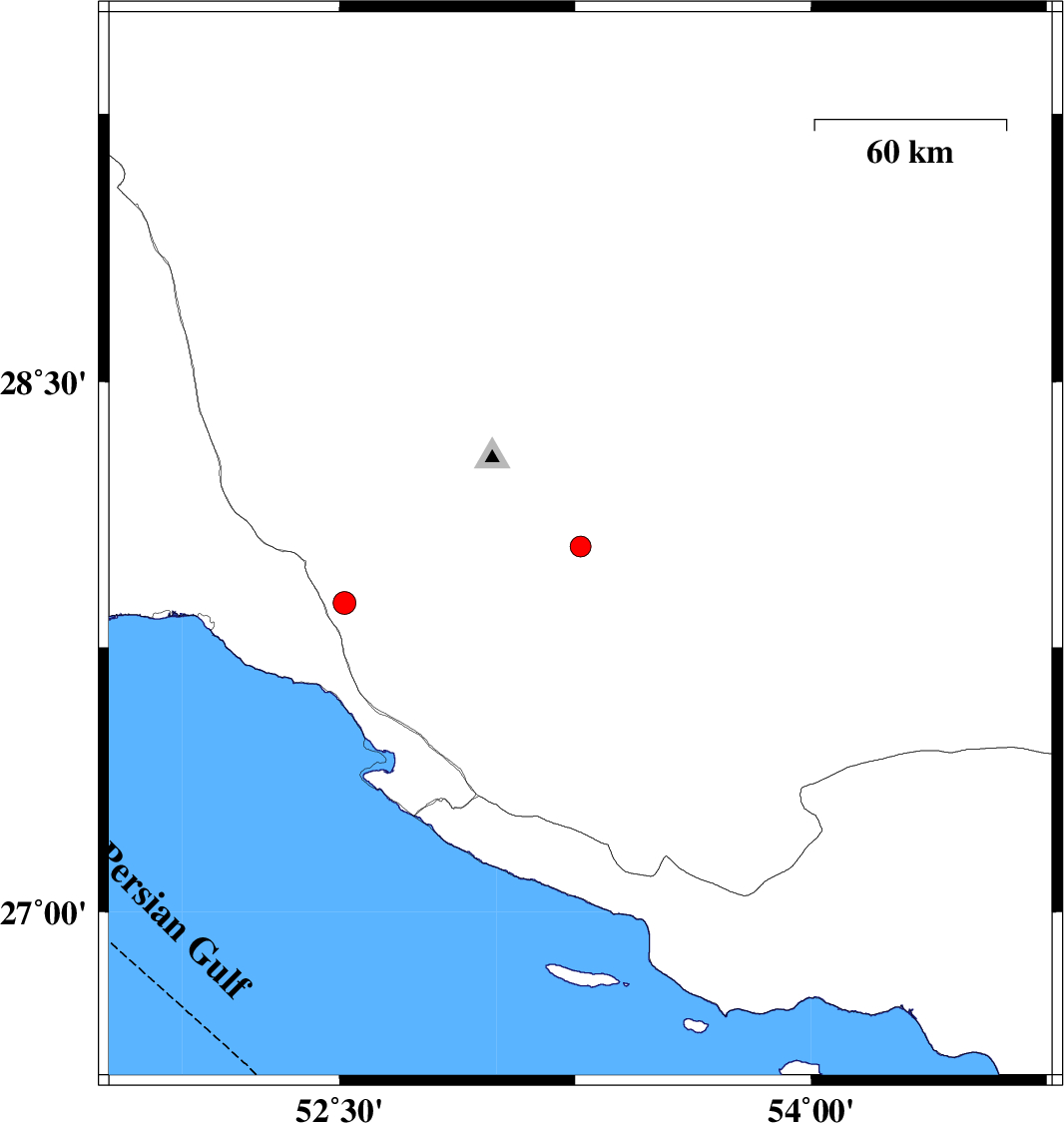 | 2016/02/12 | 22:05:46.9 | 01:35:46.9 | 27.876 | 52.516 | 14 | ML:3.2 | Fars Province, 20 km -East of Jam |