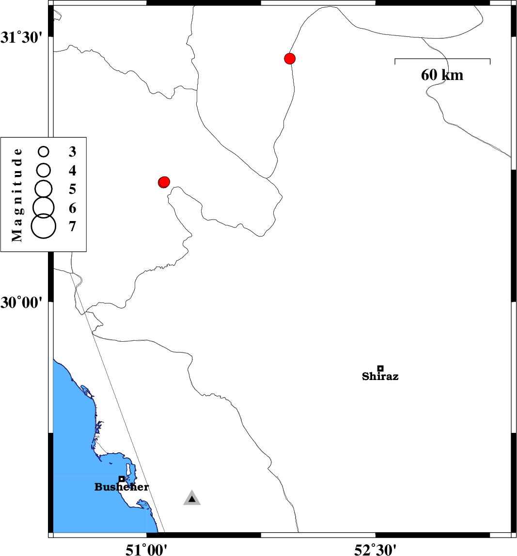 | 2016/02/25 | 10:17:29.0 | 13:47:29.0 | 29.075 | 51.457 | 9 | ML:3.2 | Bushehr Province, 29 km North-East of Ahram | ||