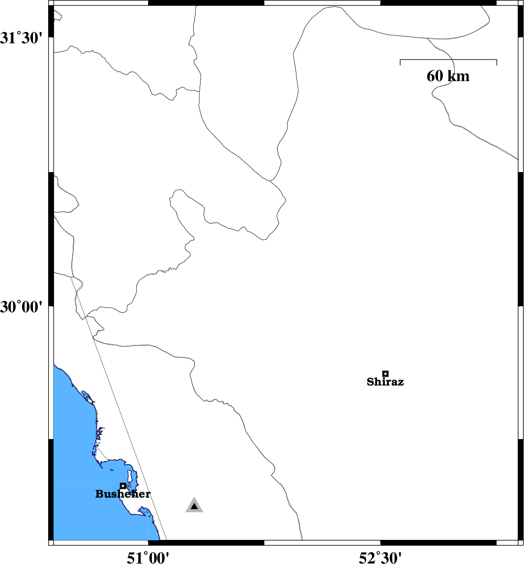 | 2016/02/25 | 13:27:38.7 | 16:57:38.7 | 29.08 | 51.463 | 8 | ML:3.1 | Bushehr Province, 30 km North-East of Ahram | ||