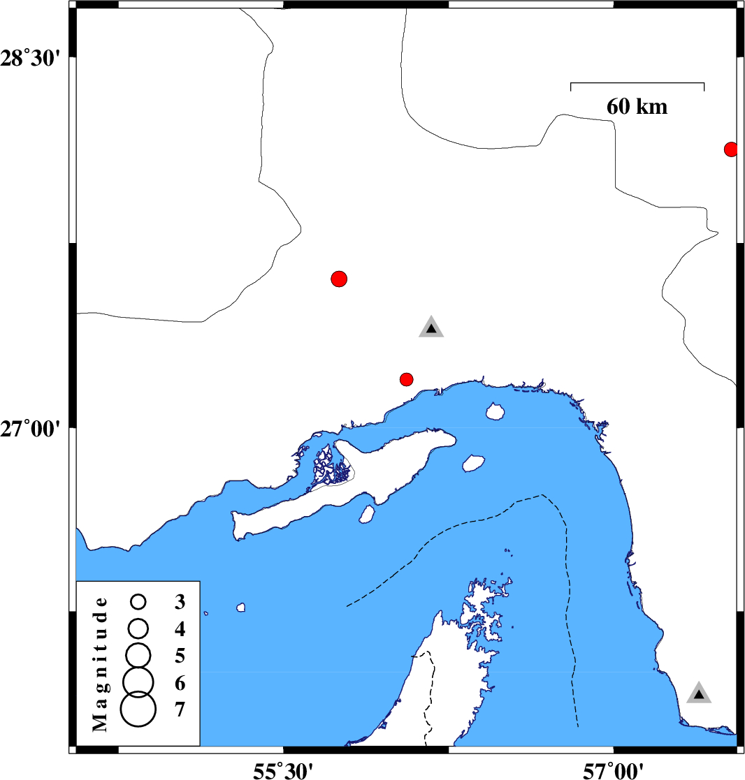 2016/02/24 | 22:32:18.6 | 02:02:18.6 | 27.196 | 56.058 | 15 | ML:2.7 | Hormozgan Province, 22 km -West of Bandar-e abbas | ||