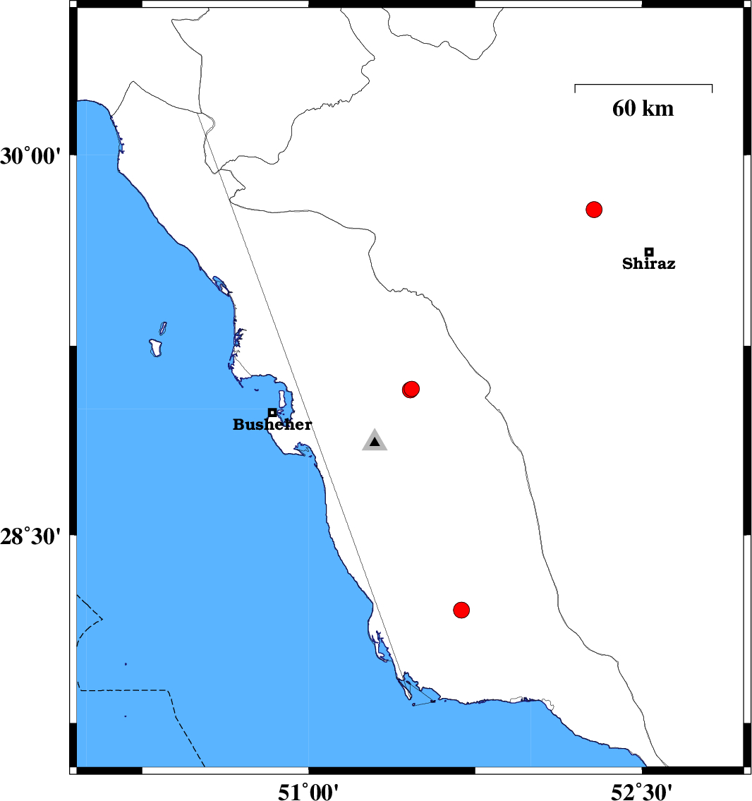 | 2016/02/25 | 13:27:38.7 | 16:57:38.7 | 29.08 | 51.463 | 8 | ML:3.1 | Bushehr Province, 30 km North-East of Ahram | ||