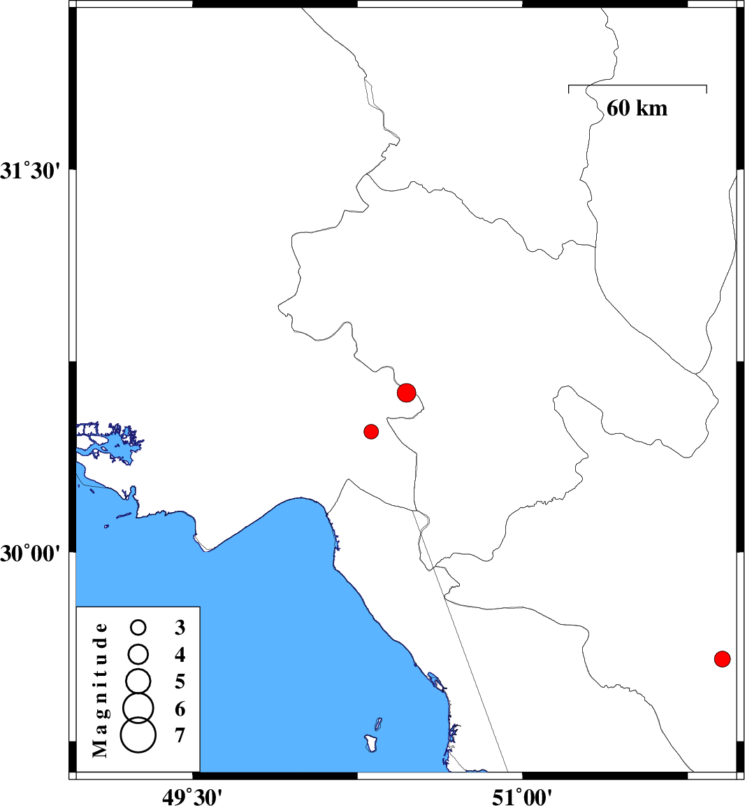 | 2016/03/10 | 09:16:25.7 | 12:46:25.7 | 30.627 | 50.472 | 14 | ML:3.8 | Khoozestan Province, 20 km South of Dehdasht | ||