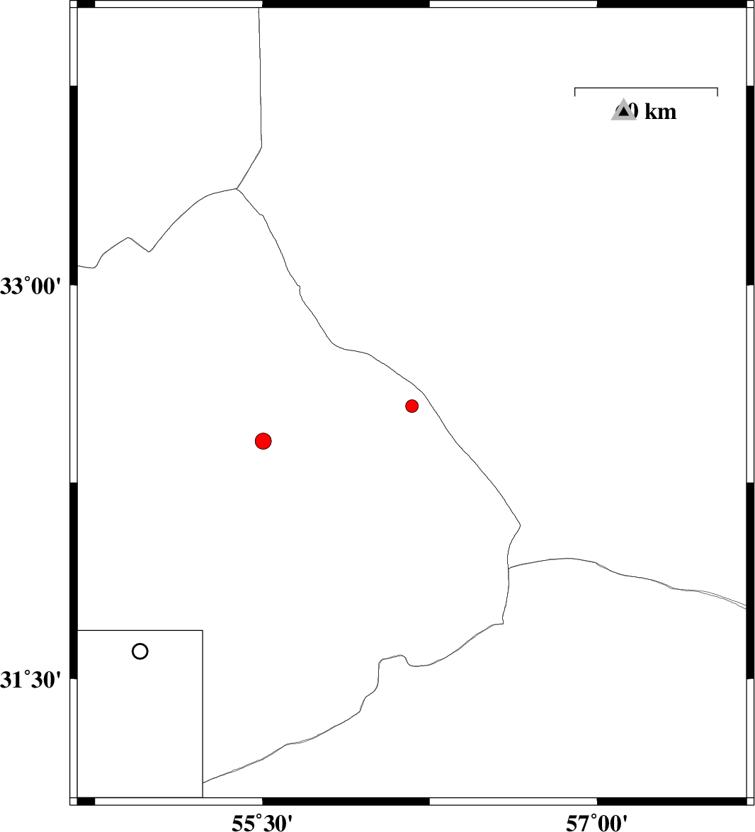 | 2016/03/14 | 06:52:16.0 | 10:22:16.0 | 32.408 | 55.504 | 14 | ML:3.2 | Yazd Province, 90 km North-East of Bafq |