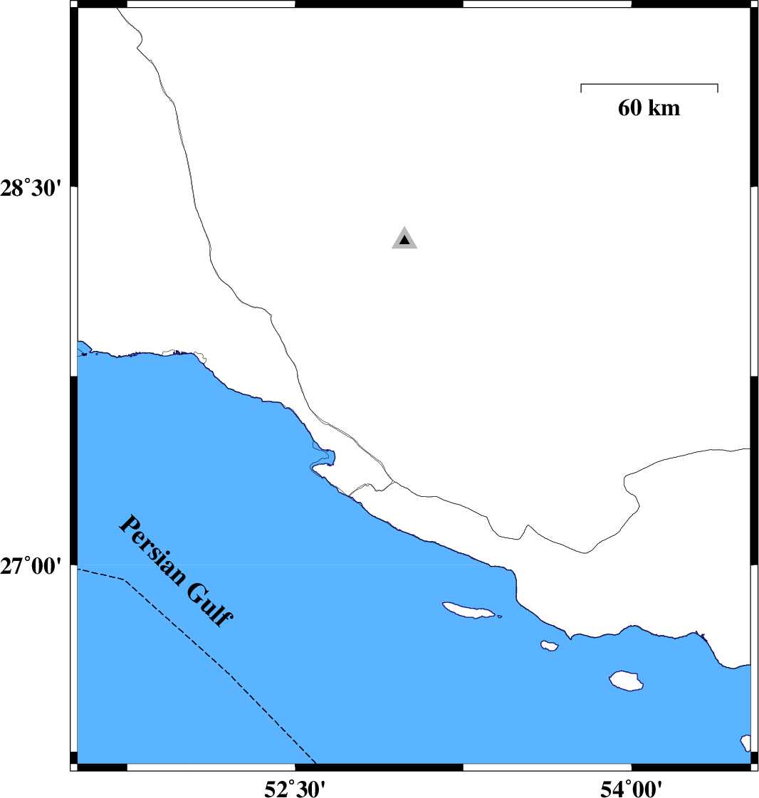 | 2016/03/28 | 19:28:28.9 | 23:58:28.9 | 27.703 | 53.03 | 14 | ML:3.4 | Fars Province, 22 km North-East of Mehr | ||