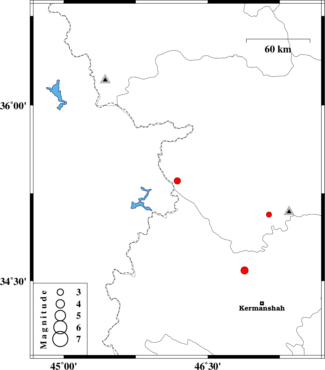 | 2016/03/21 | 09:39:54.7 | 14:09:54.7 | 35.069 | 47.138 | 14 | ML:2.5 | Kurdistan Province, 31 km South-East of Sanandaj | ||