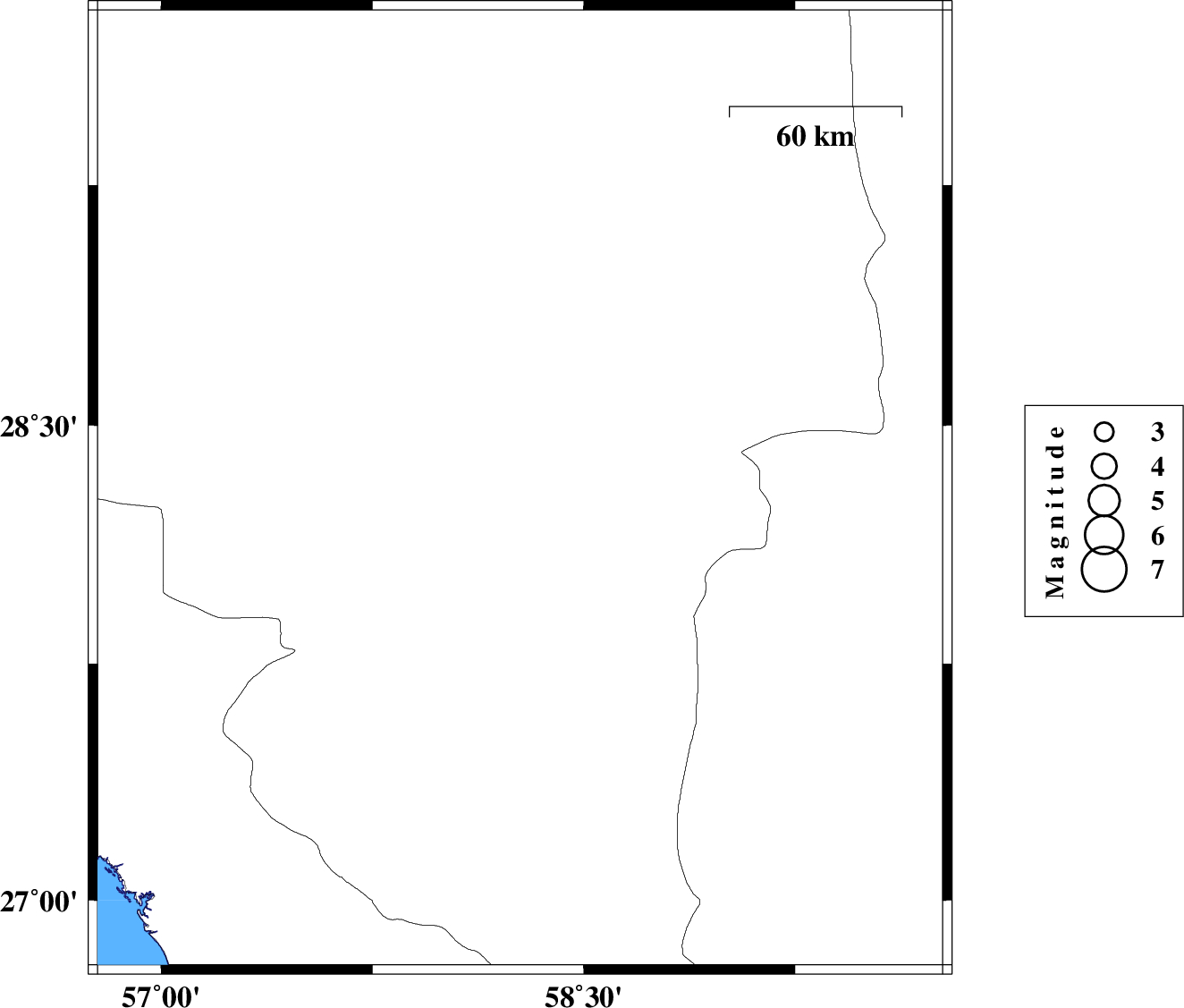 | 2016/03/02 | 07:16:07.1 | 10:46:07.1 | 27.748 | 57.574 | 14 | ML:2.9 | Kerman Province, 25 km South-West of Kahnuj |