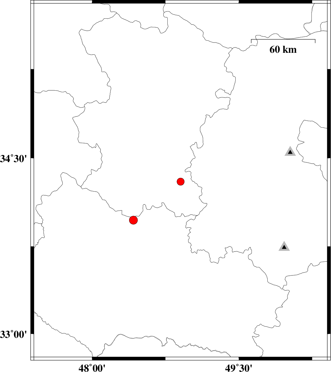 2016/03/29 | 03:47:04.2 | 08:17:04.2 | 33.973 | 48.422 | 14 | ML:3.8 | Lorestan Province, 16 km North-East of Aleshtar |