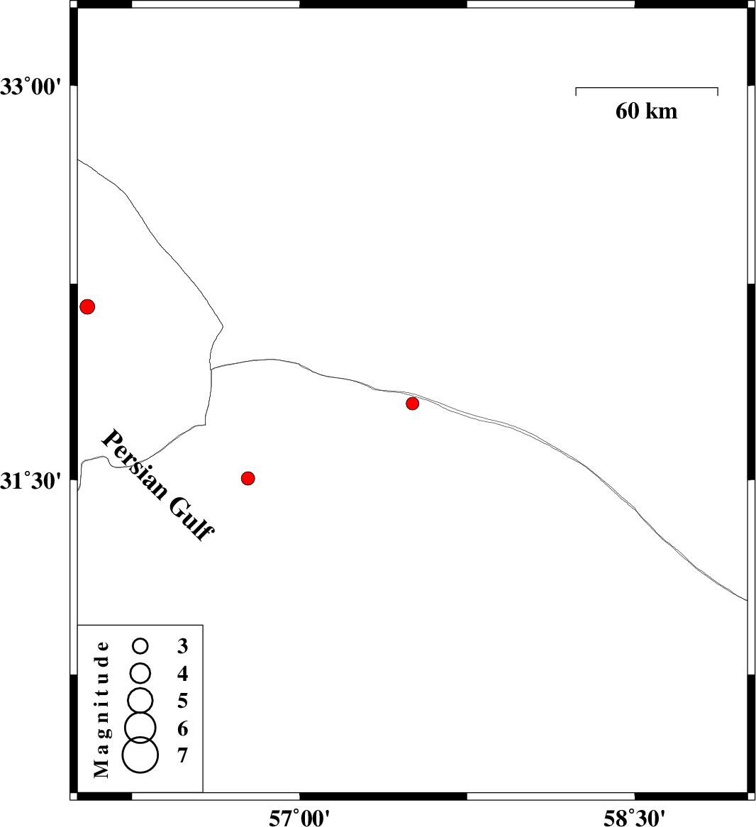 2016/03/28 | 08:30:14.0 | 13:00:14.0 | 31.793 | 57.505 | 14 | ML:2.6 | Kerman Province, 88 km North-East of Ravar | ||