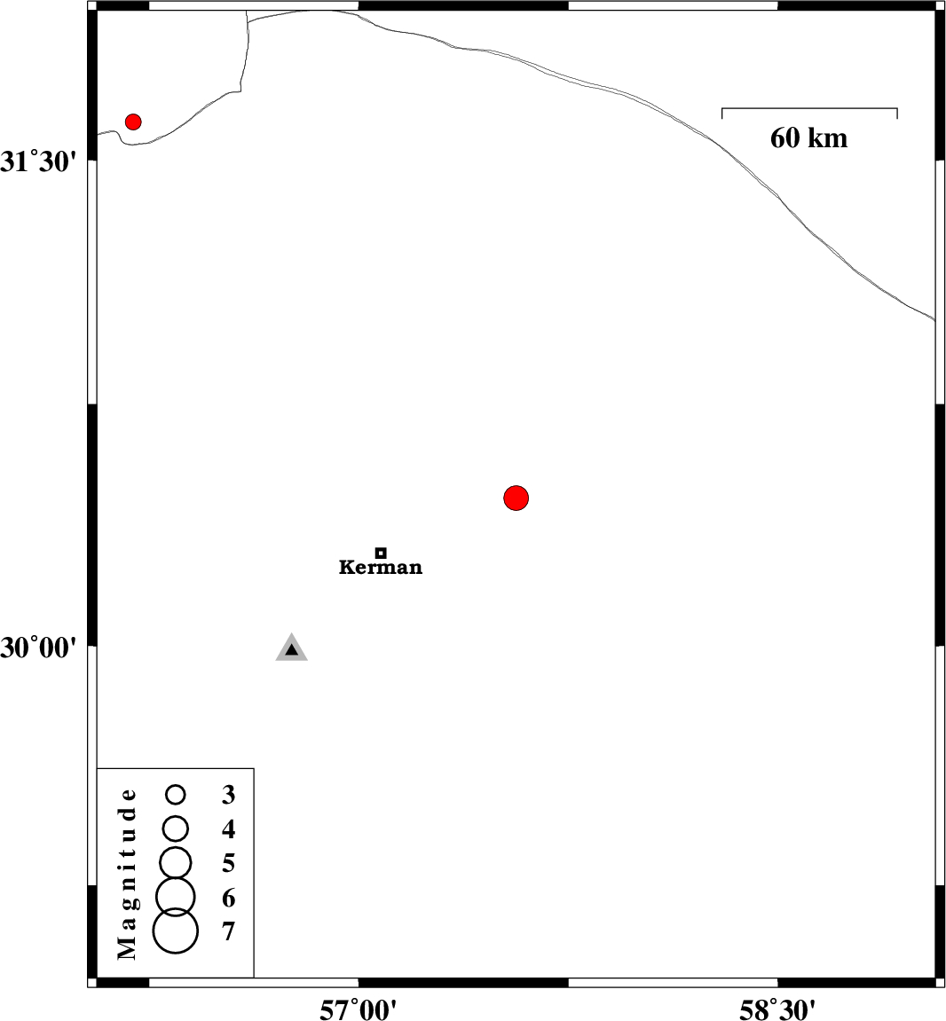 | 2016/04/05 | 04:08:00.2 | 08:38:00.2 | 30.459 | 57.563 | 14 | ML:3.9 | Kerman Province, 50 km North-East of Kerman | ||