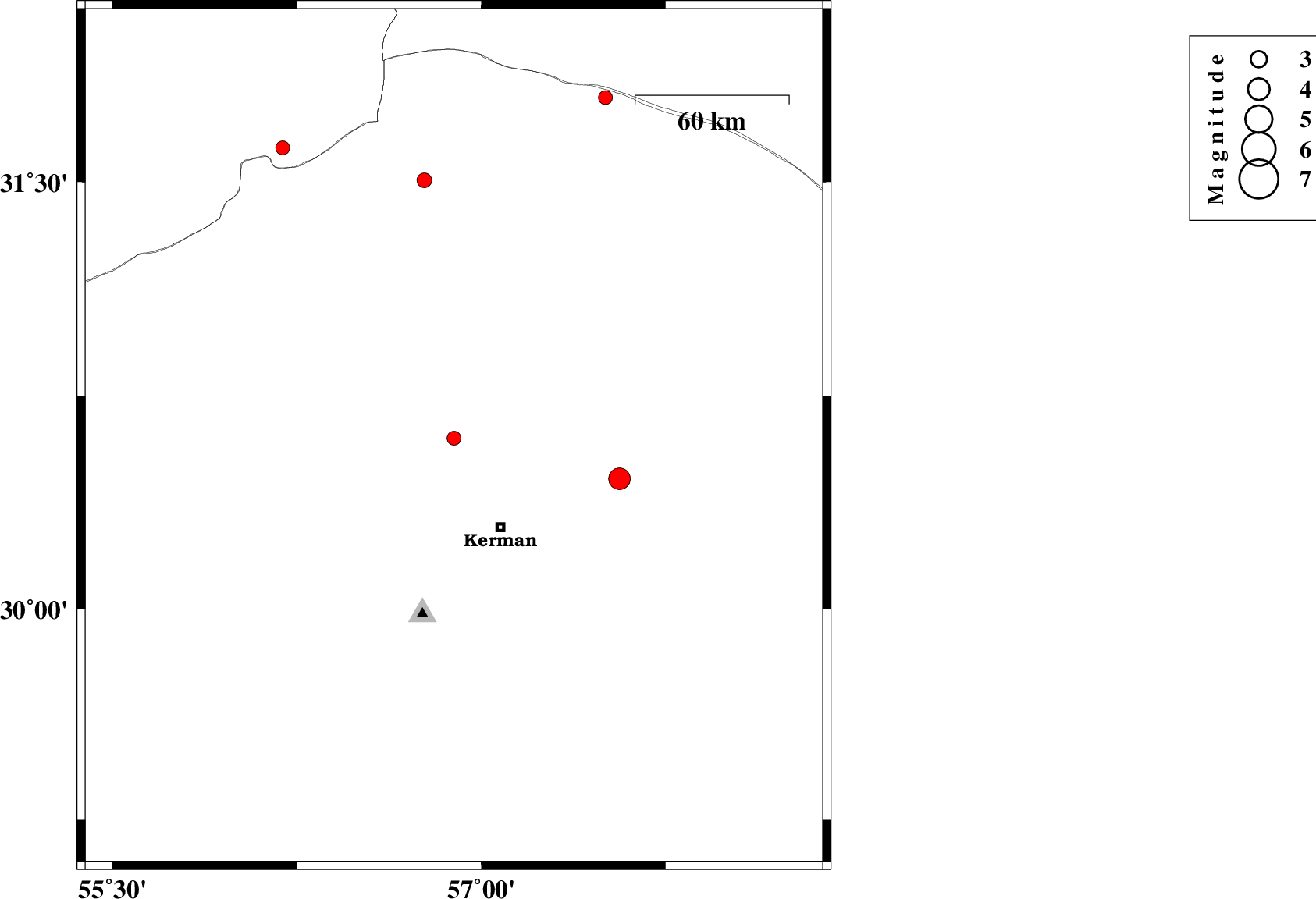 | 2016/04/05 | 04:08:00.2 | 08:38:00.2 | 30.459 | 57.563 | 14 | ML:3.9 | Kerman Province, 50 km North-East of Kerman | ||