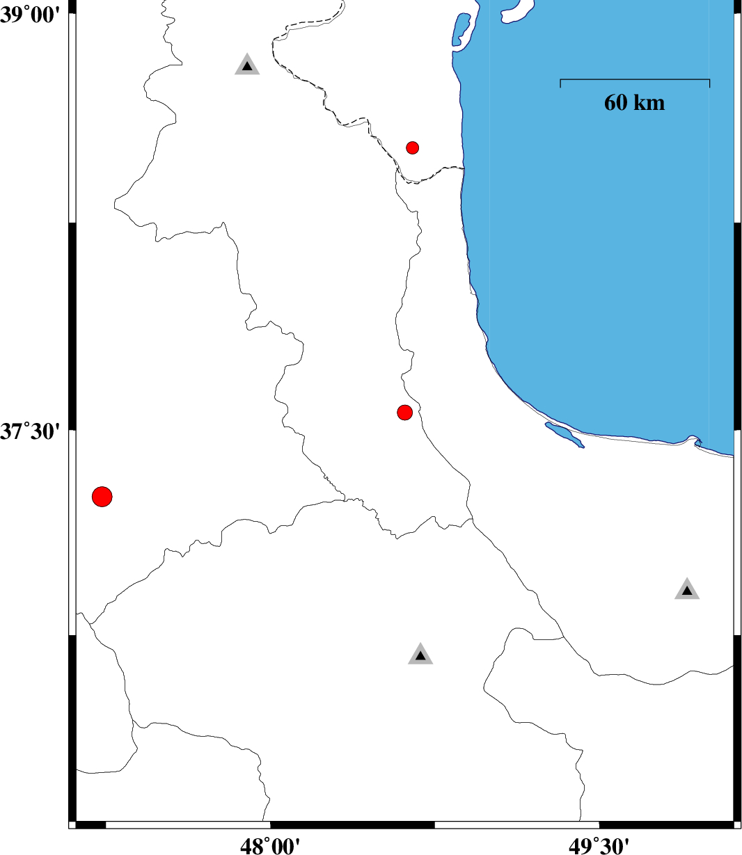 | 2016/03/10 | 17:04:20.4 | 20:34:20.4 | 38.519 | 48.648 | 14 | ML:2.6 | Azerbaijan, 19 km -East of Namin |
