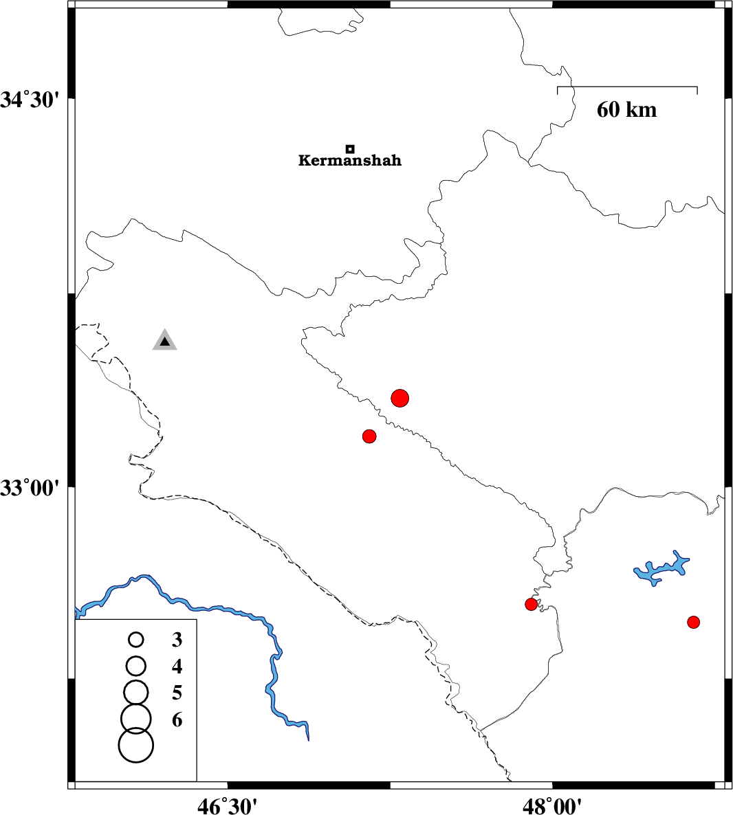 | 2016/04/12 | 14:10:12.2 | 18:40:12.2 | 33.345 | 47.295 | 14 | ML:3.6 | Lorestan Province, 24 km North of Darreh Shahr | ||