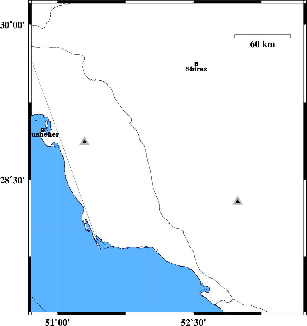 | 2016/04/08 | 07:57:21.3 | 12:27:21.3 | 27.842 | 52.928 | 17 | ML:2.8 | Fars Province, 33 km North of Mehr |