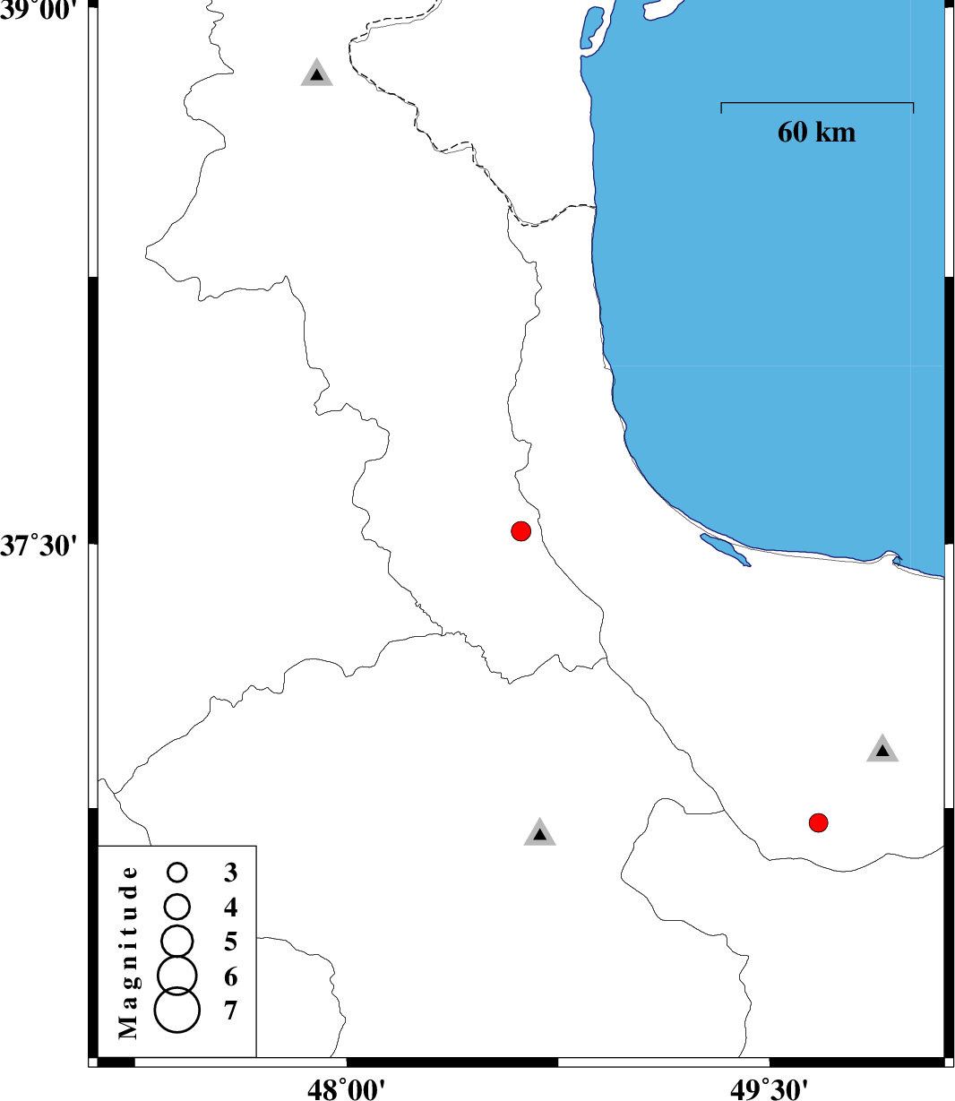 | 2016/04/14 | 10:18:53.0 | 14:48:53.0 | 36.708 | 49.673 | 14 | ML:2.9 | Gilan Province, 25 km South-East of Rudbar |