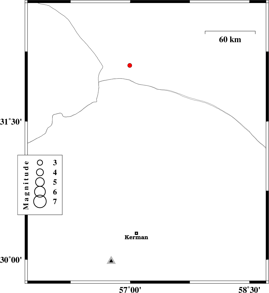 | 2016/04/16 | 17:49:15.6 | 22:19:15.6 | 31.268 | 57.208 | 14 | ML:2.4 | Kerman Province, 38 km -East of Ravar | ||