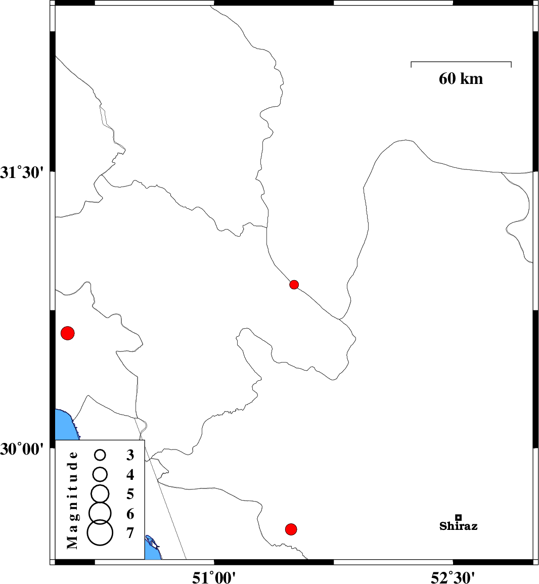 | 2016/03/17 | 14:25:57.5 | 17:55:57.5 | 29.555 | 51.482 | 9 | ML:3.2 | Fars Province, 18 km -West of Kazerun | ||