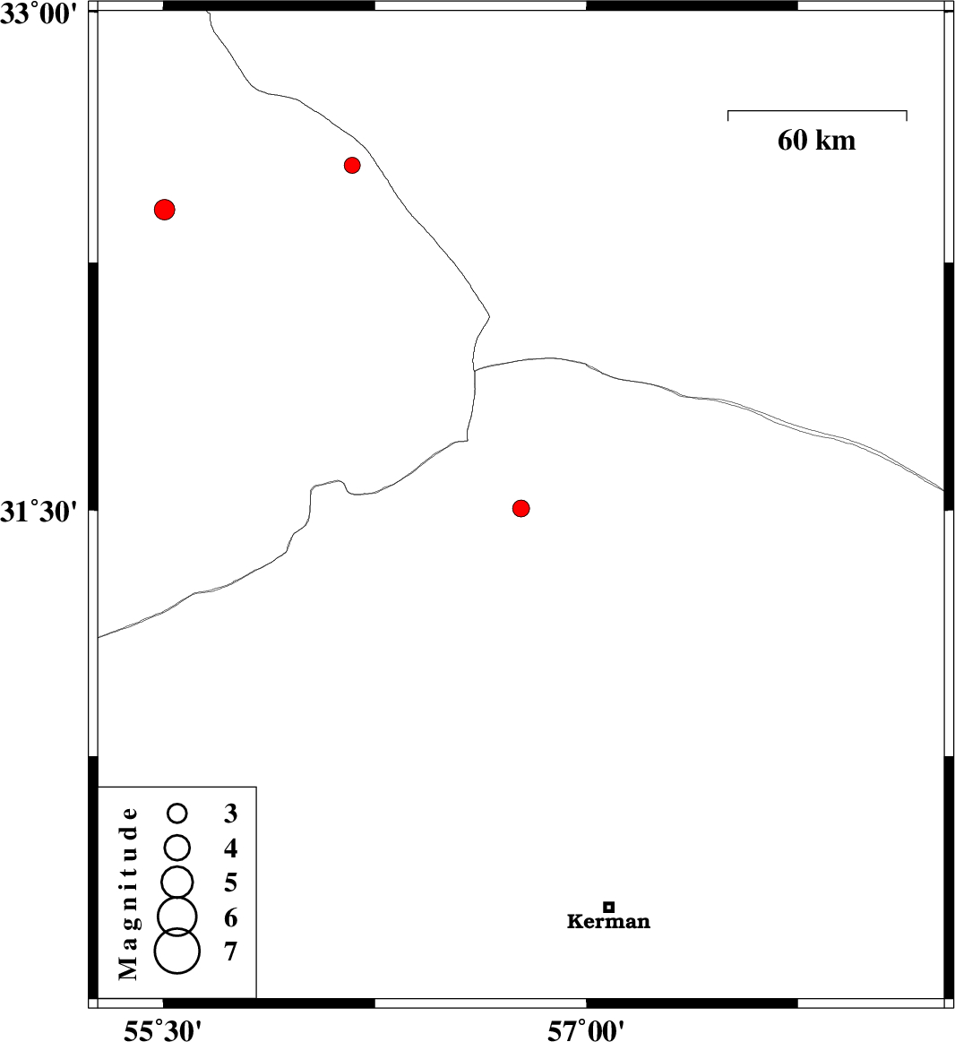 2016/03/21 | 00:31:04.9 | 05:01:04.9 | 31.506 | 56.768 | 14 | ML:2.7 | Kerman Province, 27 km North of Ravar | ||