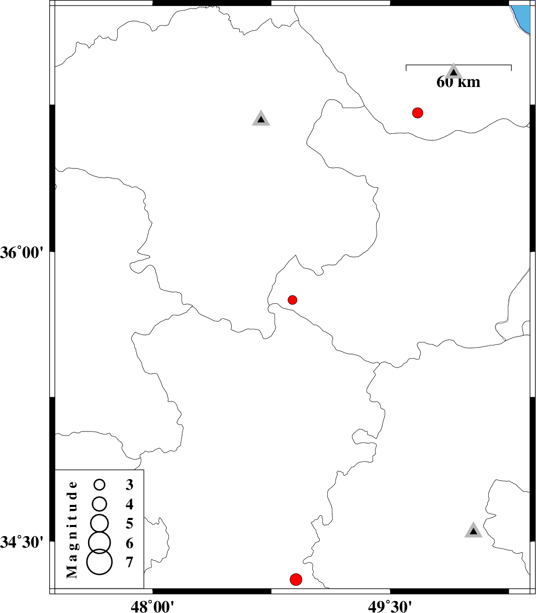 | 2016/04/19 | 04:19:34.6 | 08:49:34.6 | 35.752 | 48.883 | 14 | ML:2.6 | Ghazvin Province, 43 km North-West of Razan | ||