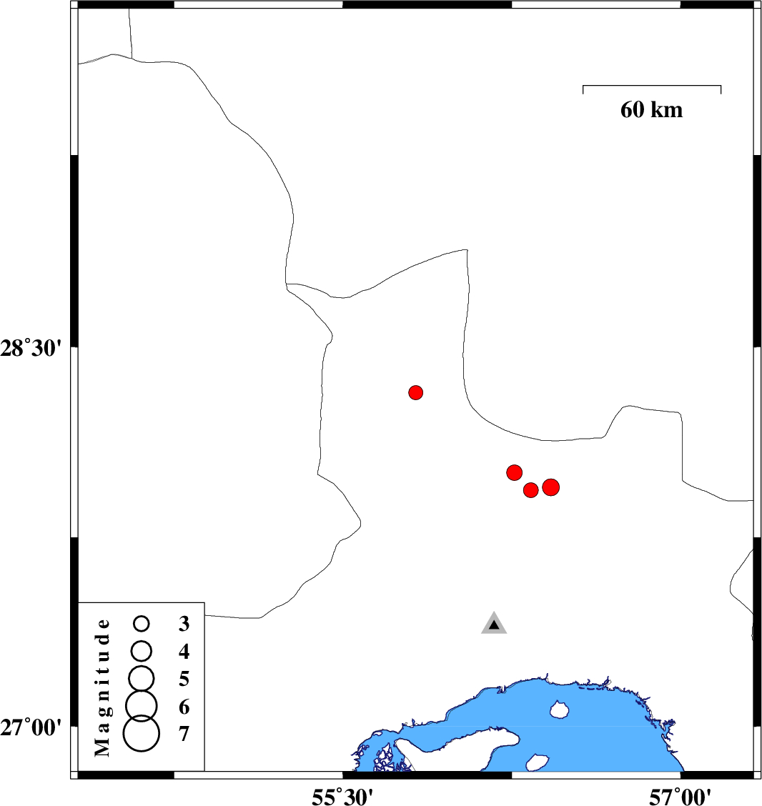 | 2016/05/02 | 20:03:55.3 | 00:33:55.3 | 27.936 | 56.335 | 14 | ML:2.9 | Hormozgan Province, 84 km North of Bandar-e abbas | ||
