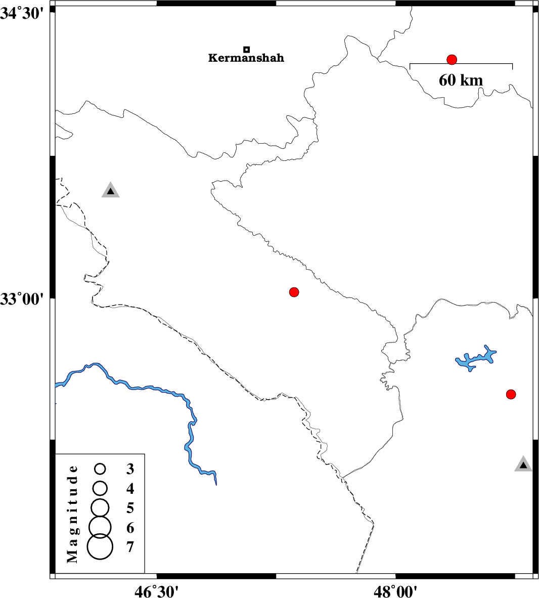 | 2016/05/08 | 14:19:13.7 | 18:49:13.7 | 33.033 | 47.362 | 14 | ML:2.7 | Ilam Province, 12 km of Darreh Shahr | ||