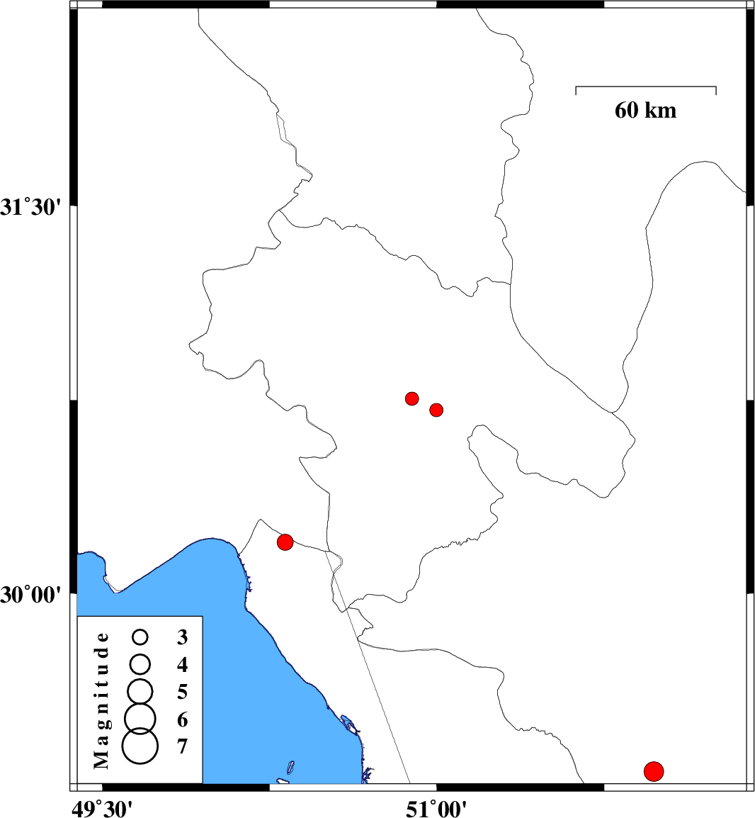 | 2016/05/11 | 05:24:36.3 | 09:54:36.3 | 30.198 | 50.32 | 15 | ML:3.2 | Khoozestan Province, 45 km South of Behbahan | ||