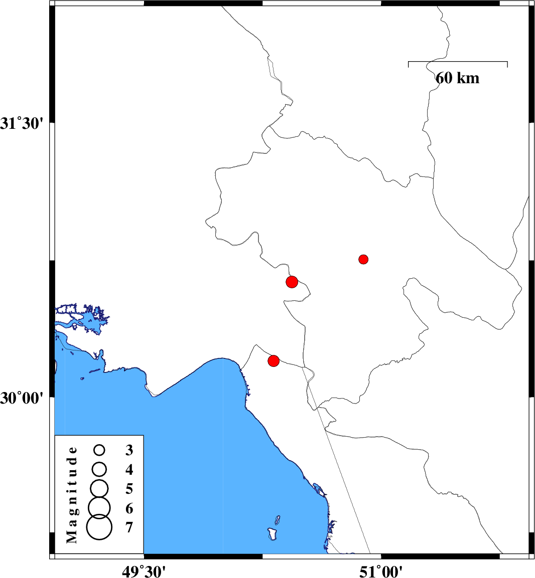 | 2016/05/11 | 05:24:36.3 | 09:54:36.3 | 30.198 | 50.32 | 15 | ML:3.2 | Khoozestan Province, 45 km South of Behbahan |