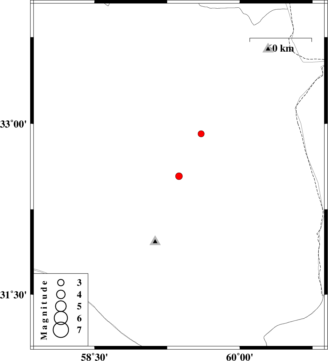 | 2016/05/25 | 20:08:53.7 | 00:38:53.7 | 32.912 | 59.6 | 6 | ML:2.9 | Khorasan(south) Province, 35 km -East of Birjand |