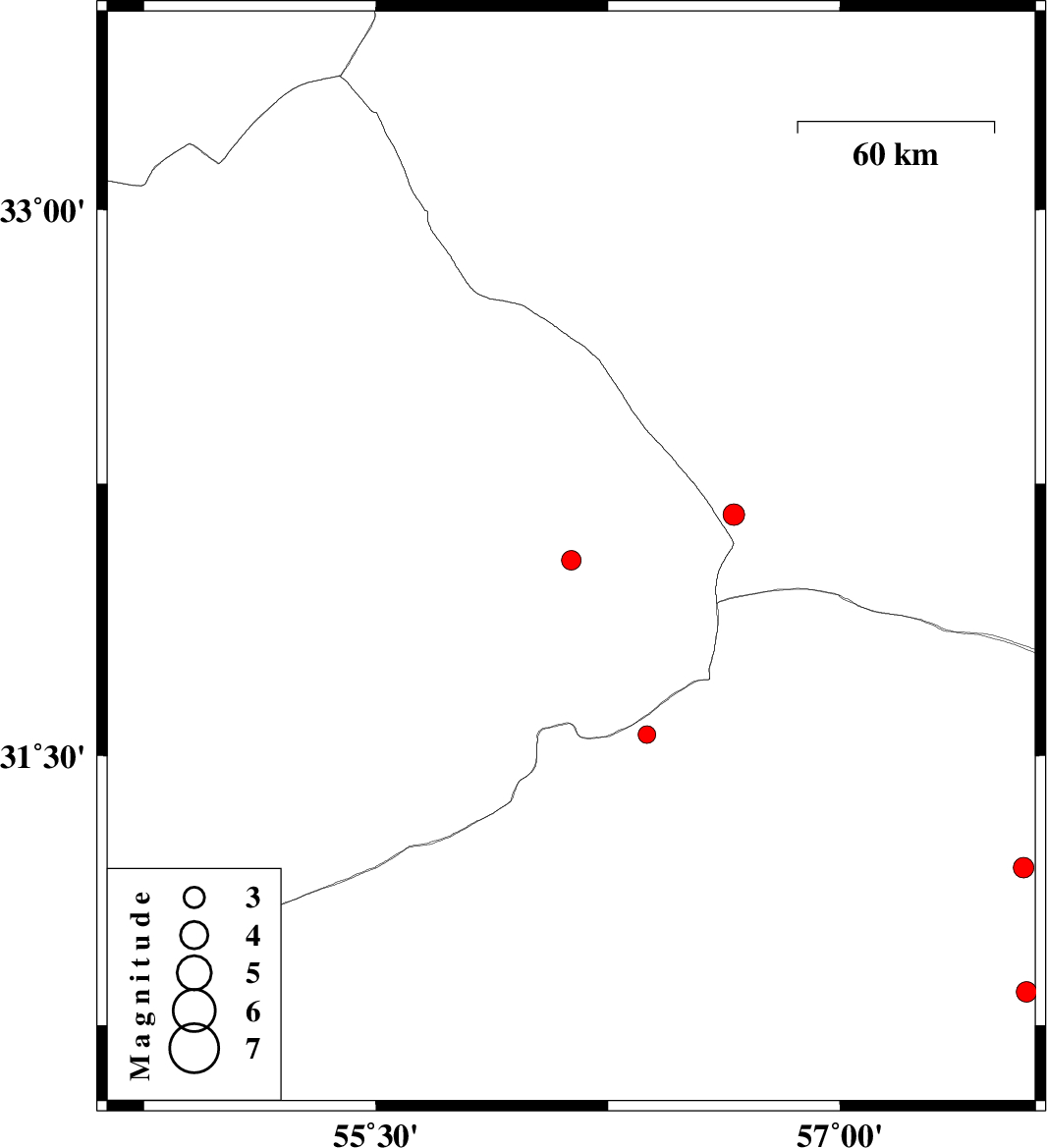 | 2016/05/28 | 23:04:04.4 | 03:34:04.4 | 31.558 | 56.375 | 16 | ML:2.5 | Kerman Province, 53 km North-West of Ravar | ||