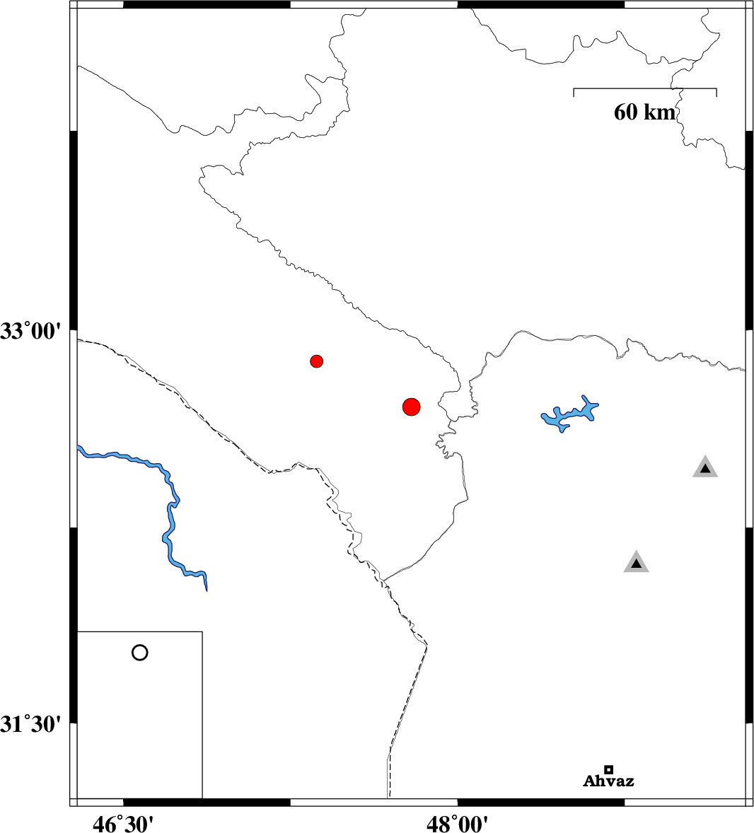 | 2016/06/05 | 17:25:00.2 | 21:55:00.2 | 32.709 | 47.792 | 15 | ML:3.5 | Ilam Province, 50 km South of Pol-e dokhtar | ||