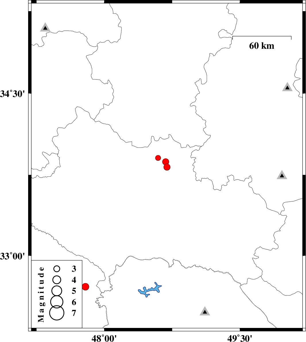 | 2016/06/09 | 06:04:13.5 | 10:34:13.5 | 33.822 | 48.693 | 15 | ML:3.2 | Lorestan Province, 10 km of Borujerd | ||
