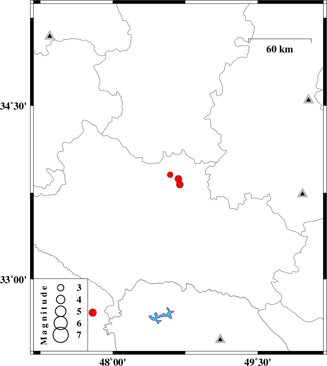 | 2016/06/09 | 06:04:13.5 | 10:34:13.5 | 33.822 | 48.693 | 15 | ML:3.2 | Lorestan Province, 10 km of Borujerd | ||