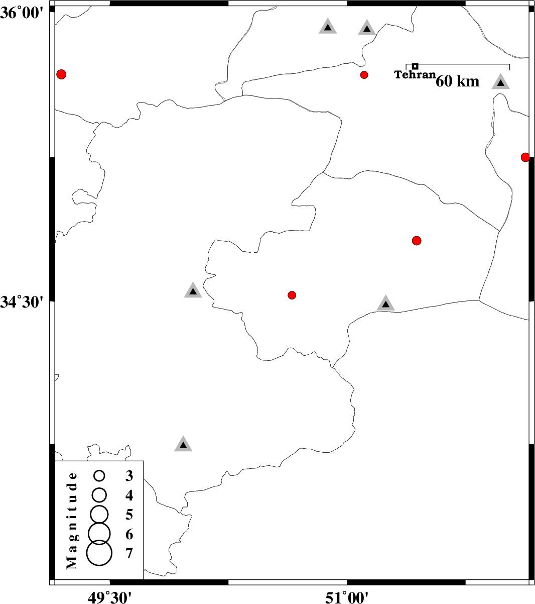 | 2016/06/13 | 06:49:10.6 | 11:19:10.6 | 35.678 | 49.192 | 15 | ML:2.7 | Ghazvin Province, 36 km North-East of Razan | ||