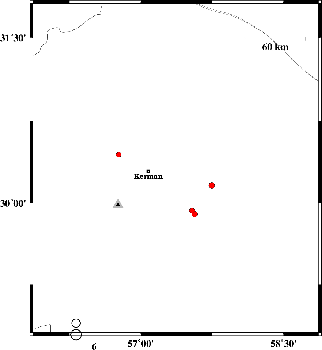 | 2016/06/30 | 02:11:57.8 | 06:41:57.8 | 30.537 | 57.573 | 14 | ML:2.8 | Kerman Province, 55 km North-East of Kerman | ||