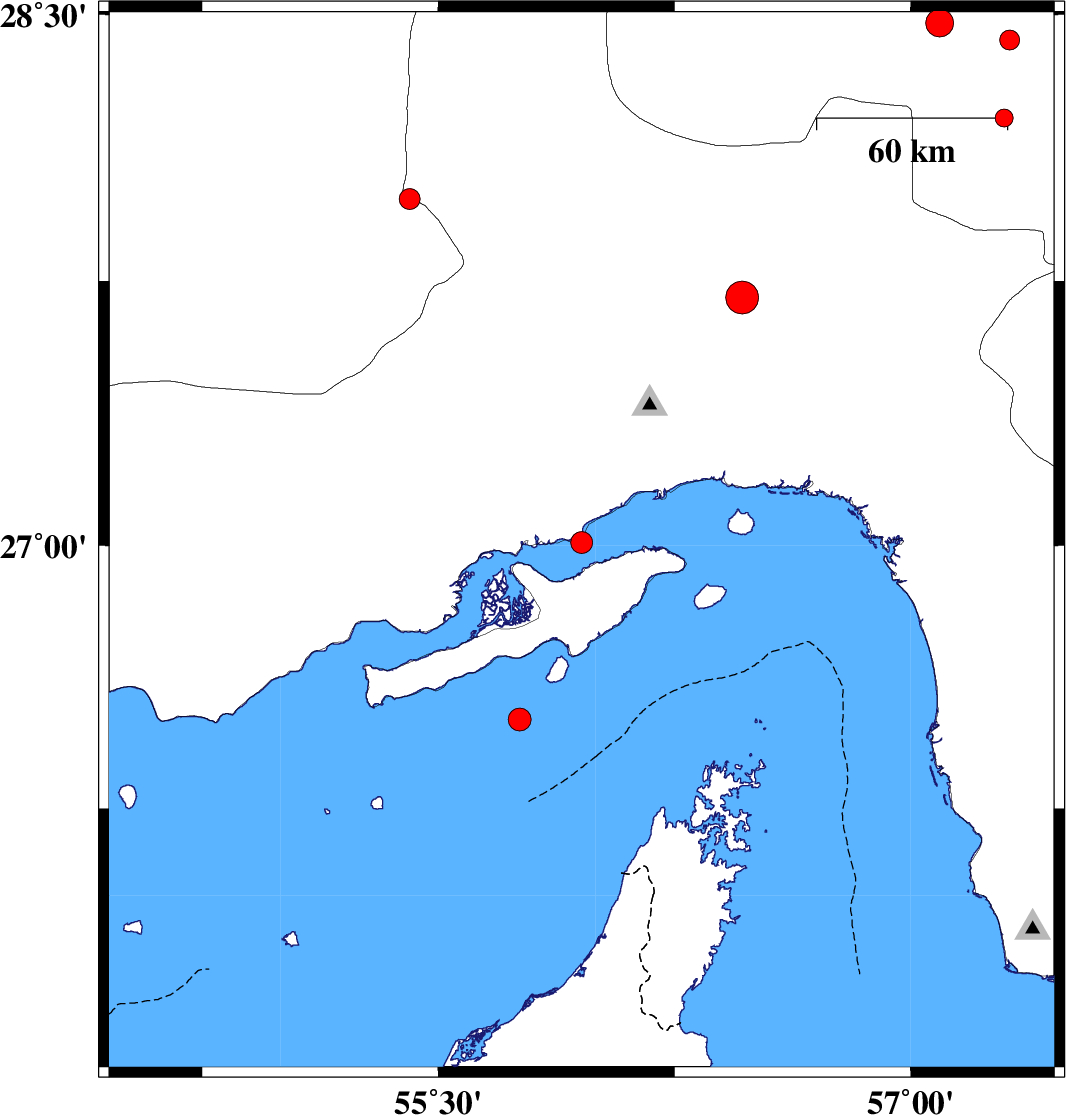 Persian Gulf, 90 km -East of Bandar-e lengeh | |