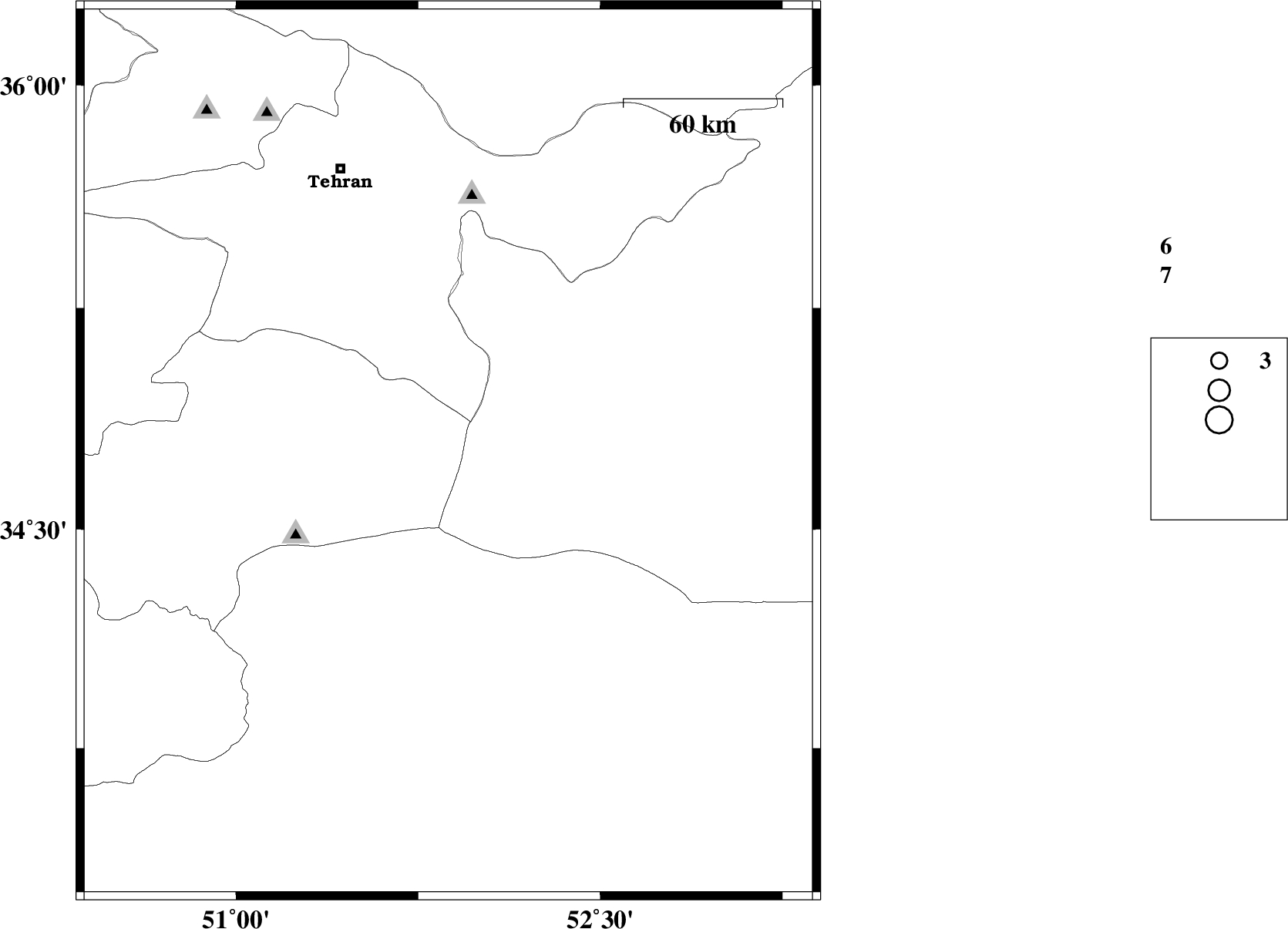 | 2016/07/14 | 06:53:39.8 | 11:23:39.8 | 34.755 | 51.874 | 14 | ML:2.5 | Qom Province, 66 km South-East of Varamin |