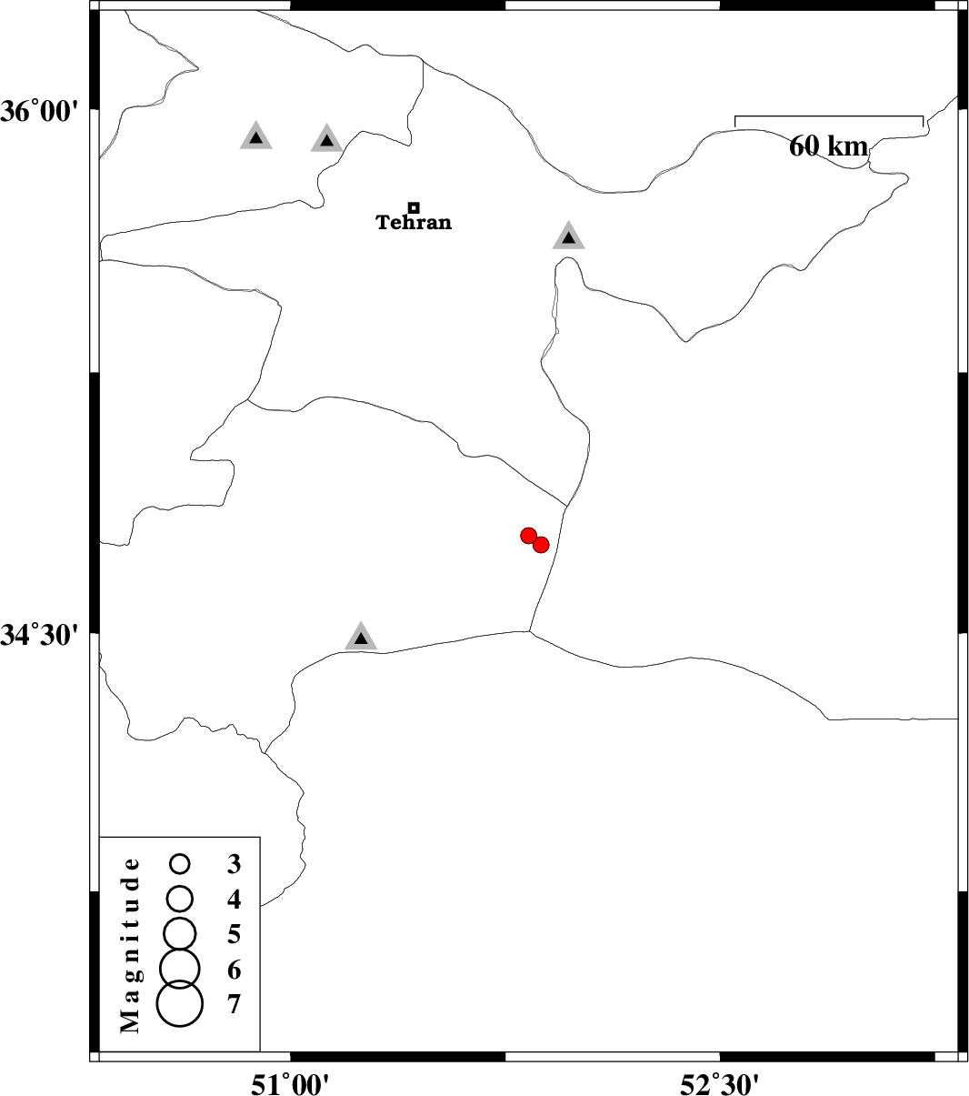 | 2016/07/14 | 06:53:39.8 | 11:23:39.8 | 34.755 | 51.874 | 14 | ML:2.5 | Qom Province, 66 km South-East of Varamin |