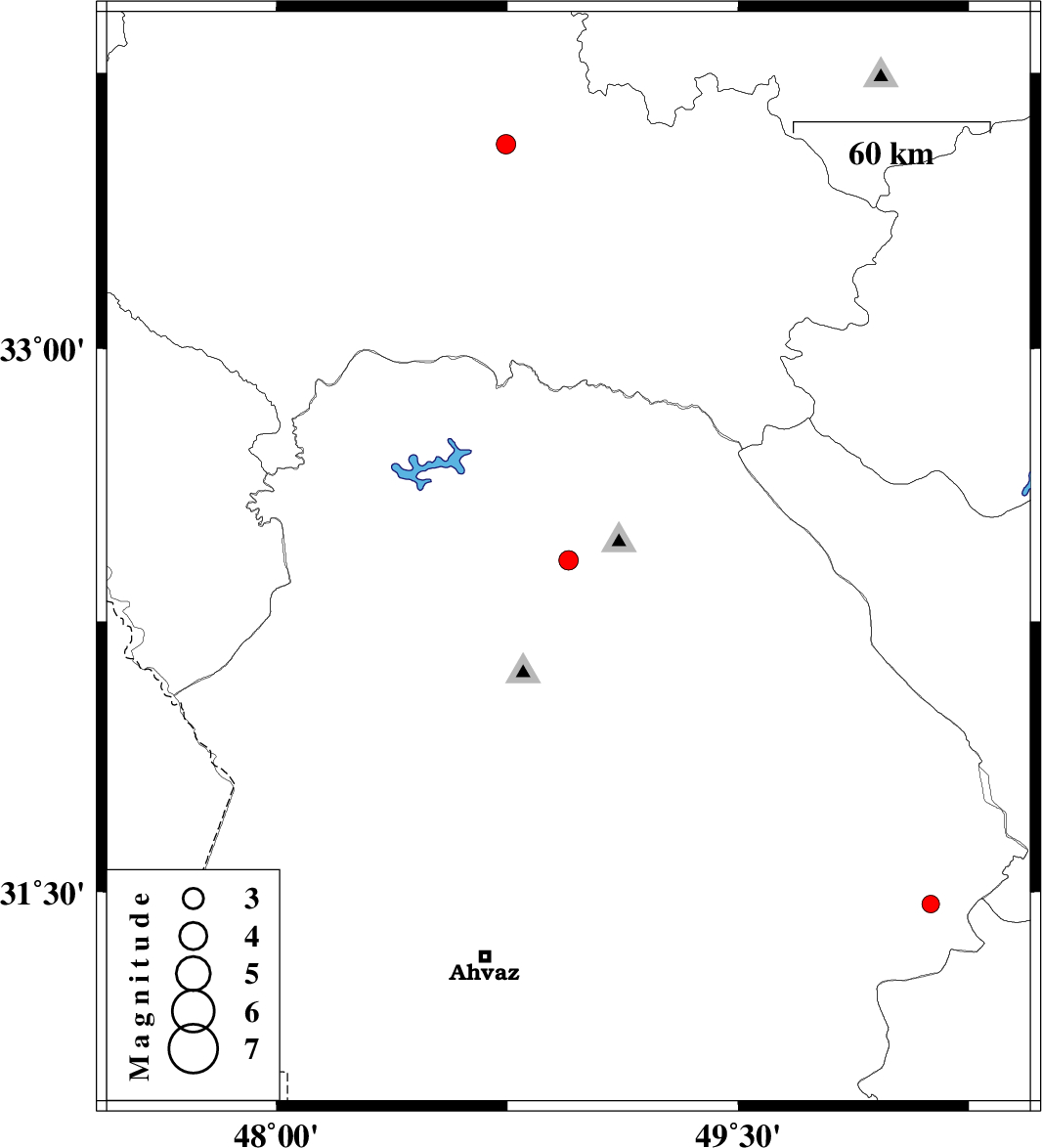 | 2016/08/08 | 17:49:01.7 | 22:19:01.7 | 32.418 | 48.949 | 18 | ML:2.8 | Khoozestan Province, 15 km -West of Lali | ||