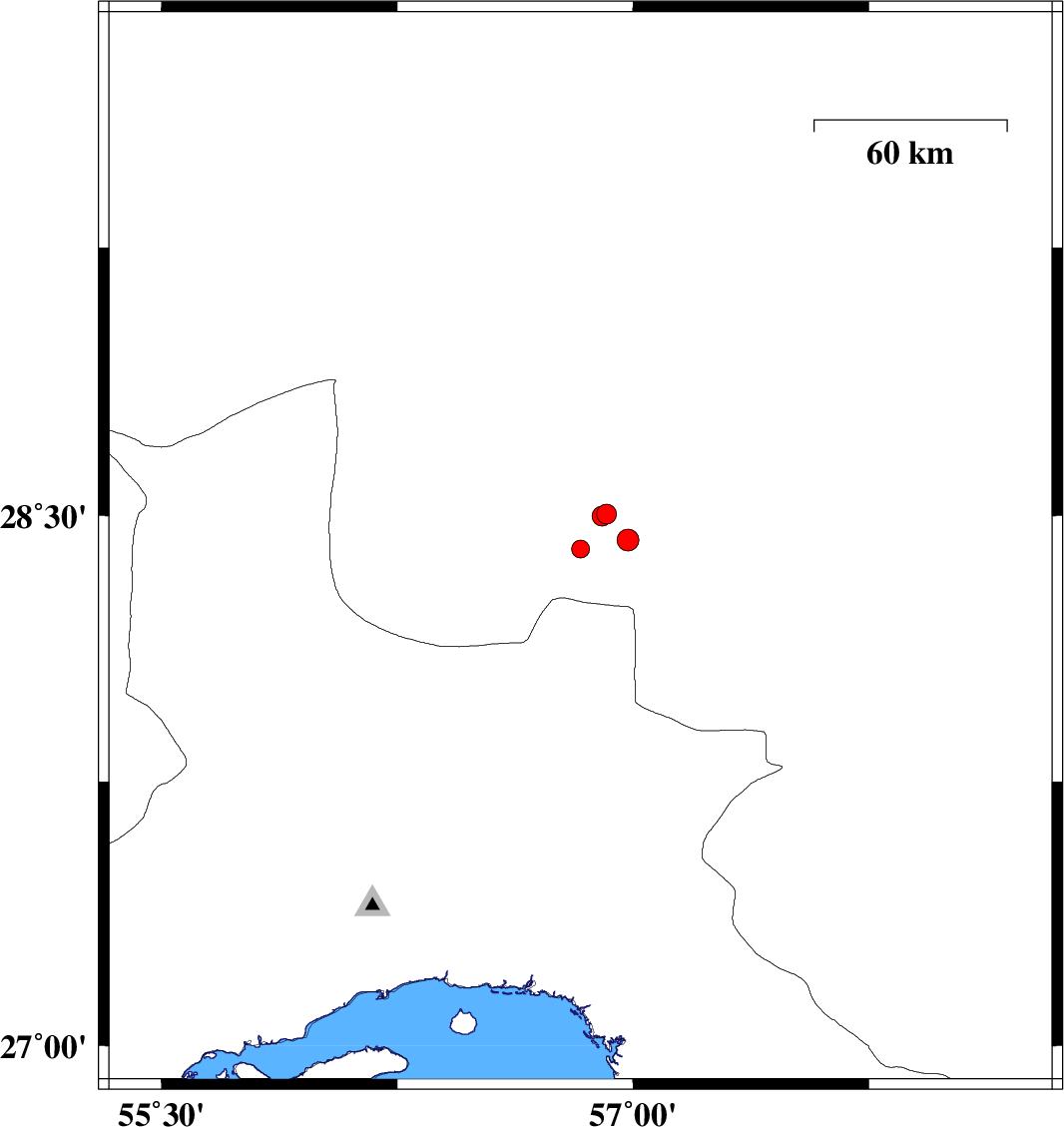 | 2016/08/09 | 06:24:24.0 | 10:54:24.0 | 28.504 | 56.915 | 15 | ML:2.8 | Kerman Province, 83 km South-West of Jiroft | ||