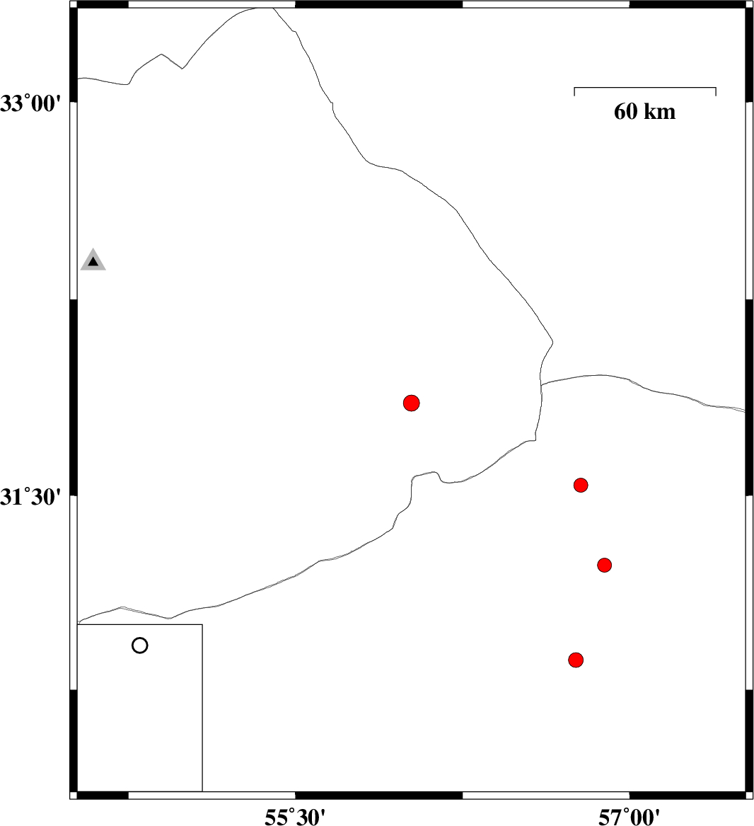 | 2016/08/06 | 04:12:01.5 | 08:42:01.5 | 30.865 | 56.758 | 14 | ML:3 | Kerman Province, 19 km -East of Zarand | ||