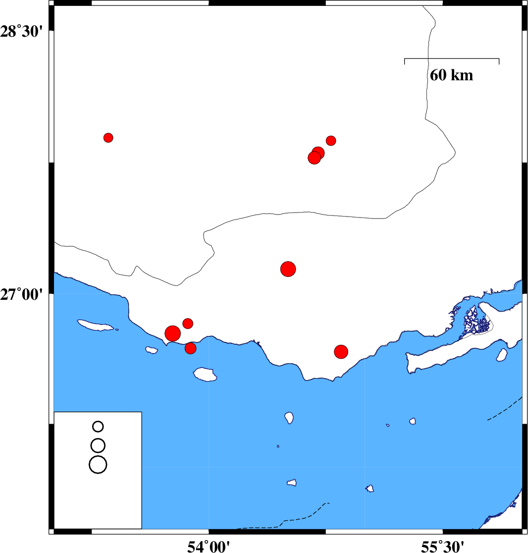 Persian Gulf, 74 km South-West of Bastak | |