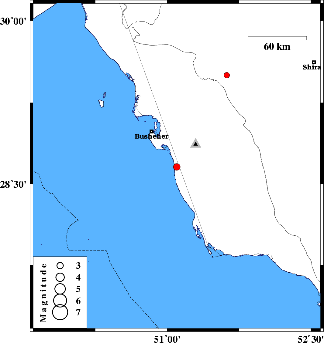 | 2016/08/15 | 00:58:00.3 | 05:28:00.3 | 29.501 | 51.622 | 6 | ML:2.7 | Fars Province, 14 km South of Kazerun |